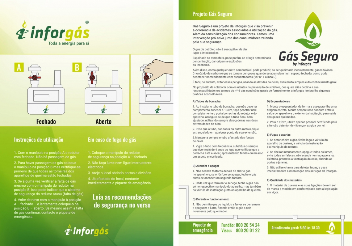 No propósito de colaborar com os utentes na prevenção de sinistros, dos quais aliás declina a sua responsabilidade nos termos do nº 6 das condições gerais de fornecimento, a Inforgás lembra-lhe algumas práticas aconselháveis.